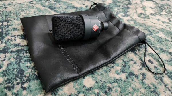 alt="Neumann TLM 102 Studio microfono a condensatore professionale con supporto antivibrazione"
