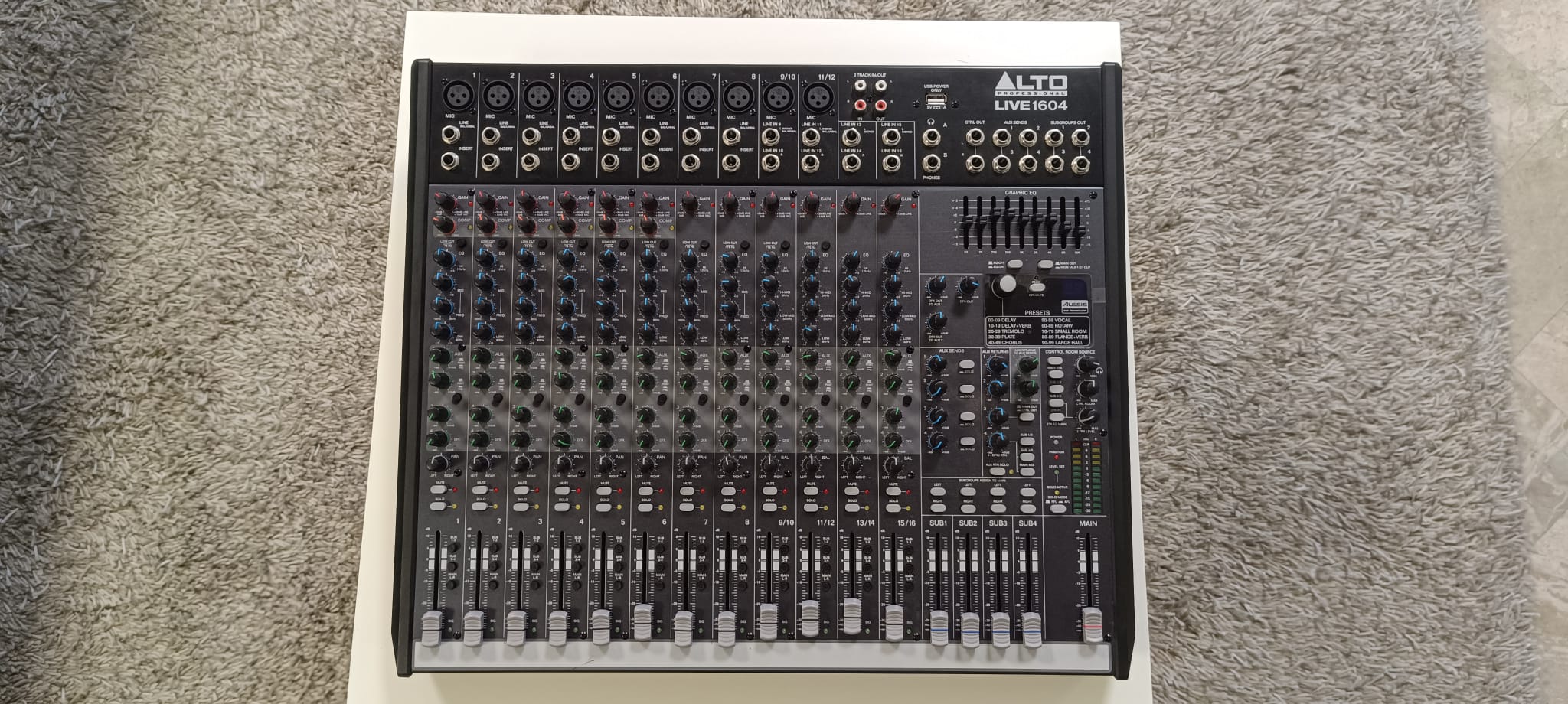 Il mixer Alto LIVE 1604 combina compattezza, qualità audio professionale e versatilità, con 16 canali, compressione analogica, 100 effetti DSP Alesis e interfaccia USB per live, prove e registrazioni.