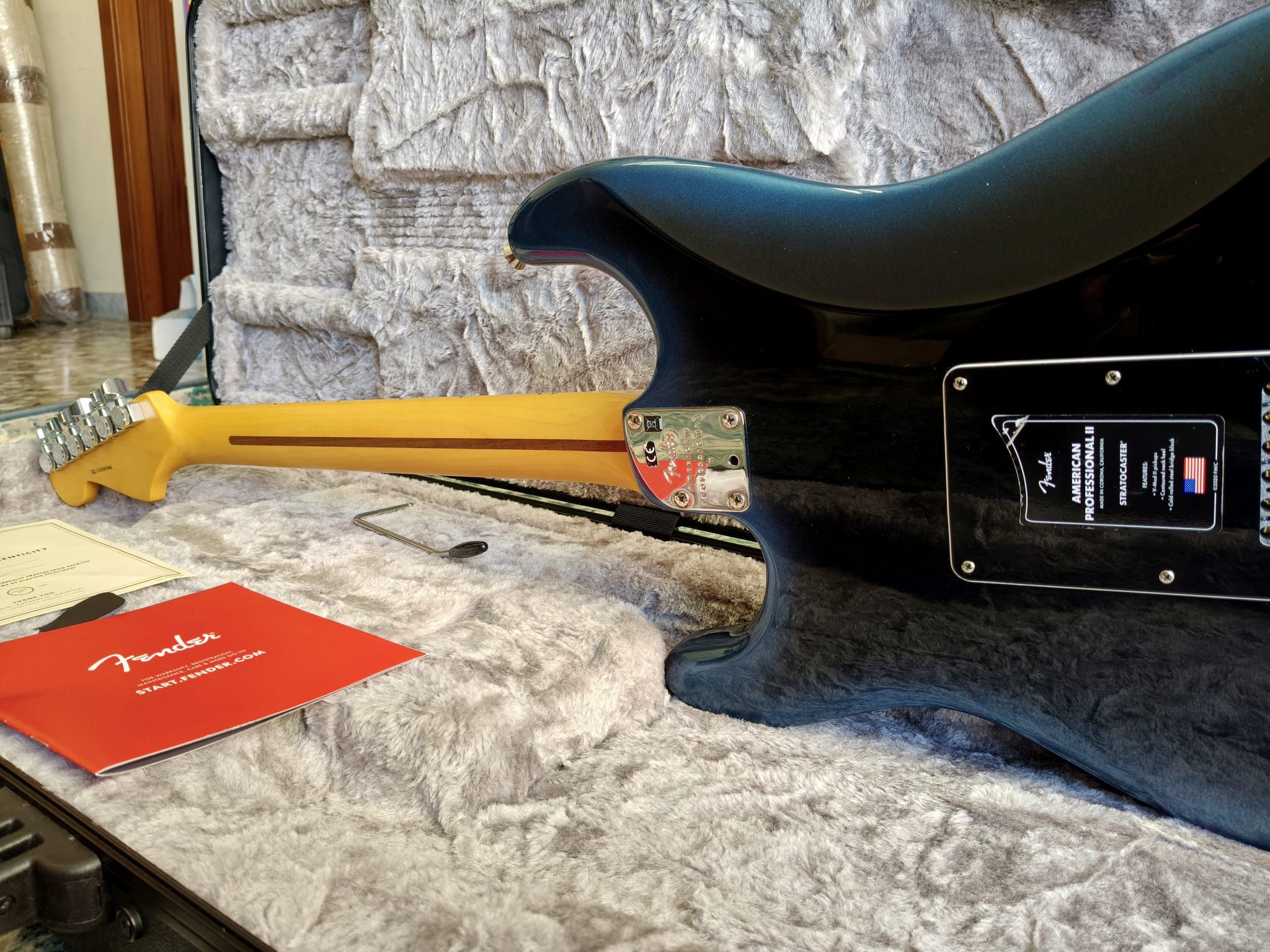Fender American Professional II Stratocaster MN Dark Night, chitarra made in USA con pickup V-Mod II e finitura elegante. Possibilità di permuta.