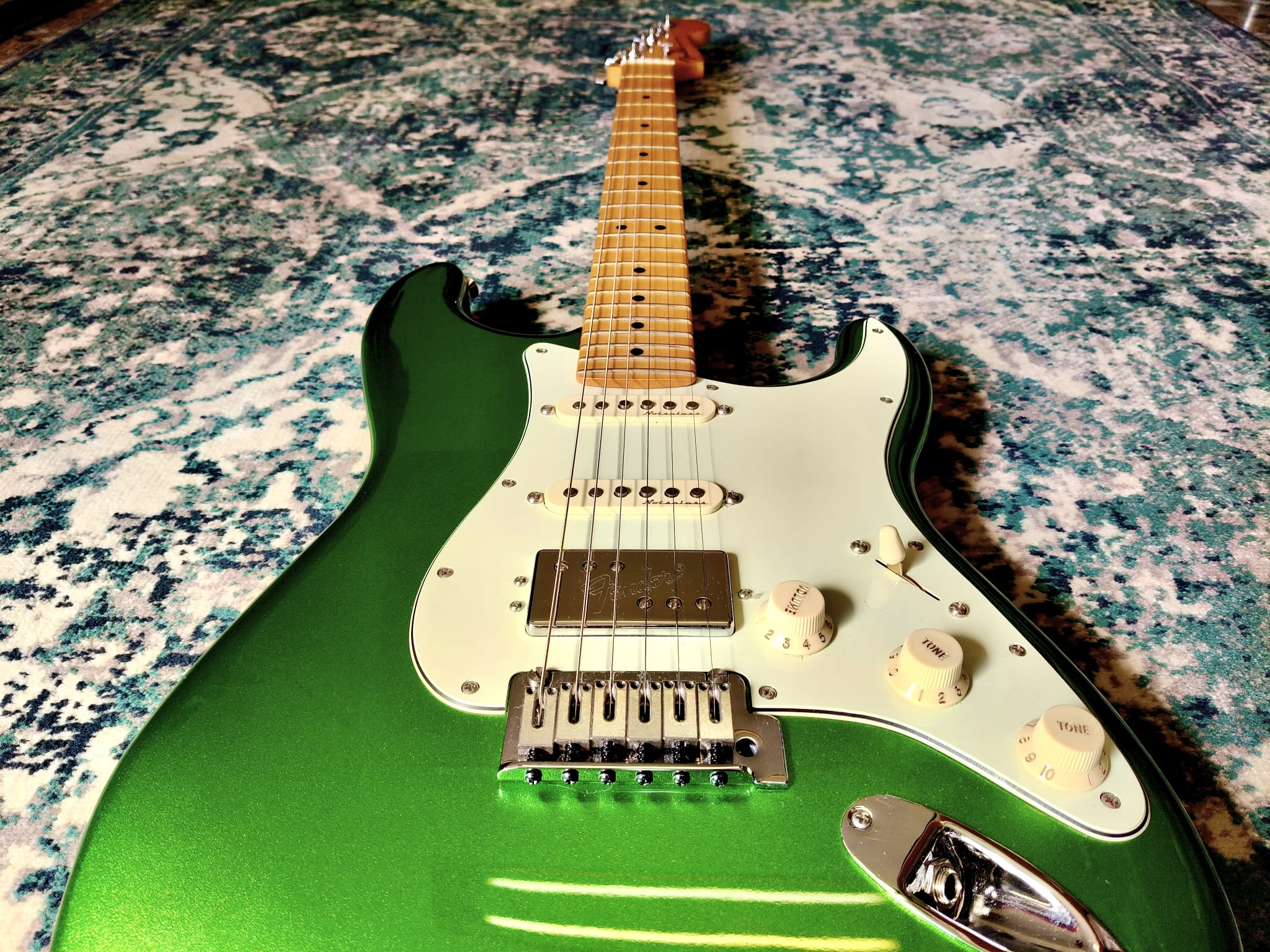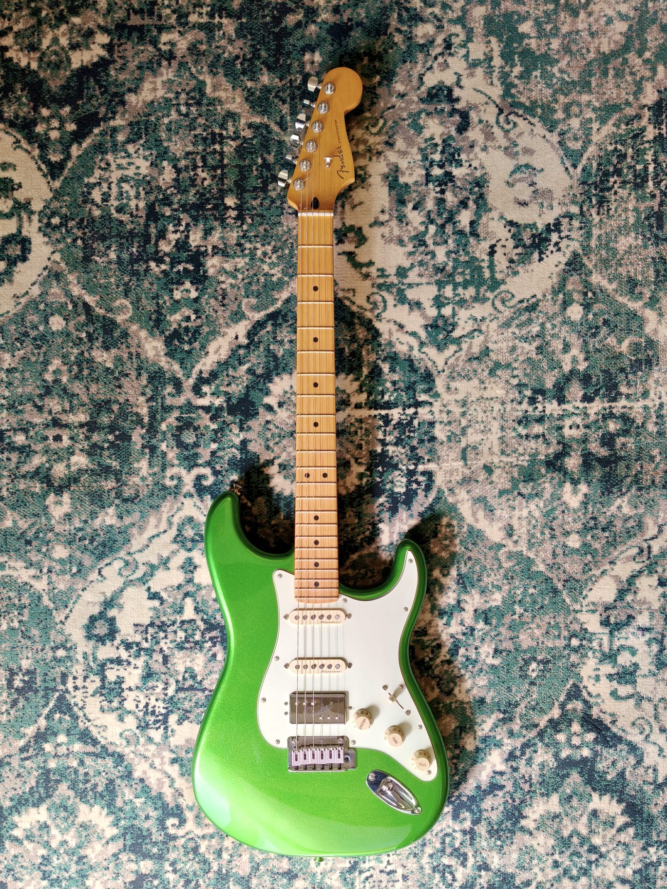 Fender Stratocaster Player Plus Cosmic Jade HSS, chitarra elettrica versatile con pickup HSS e ponte tremolo. Ottime condizioni, permuta disponibile.