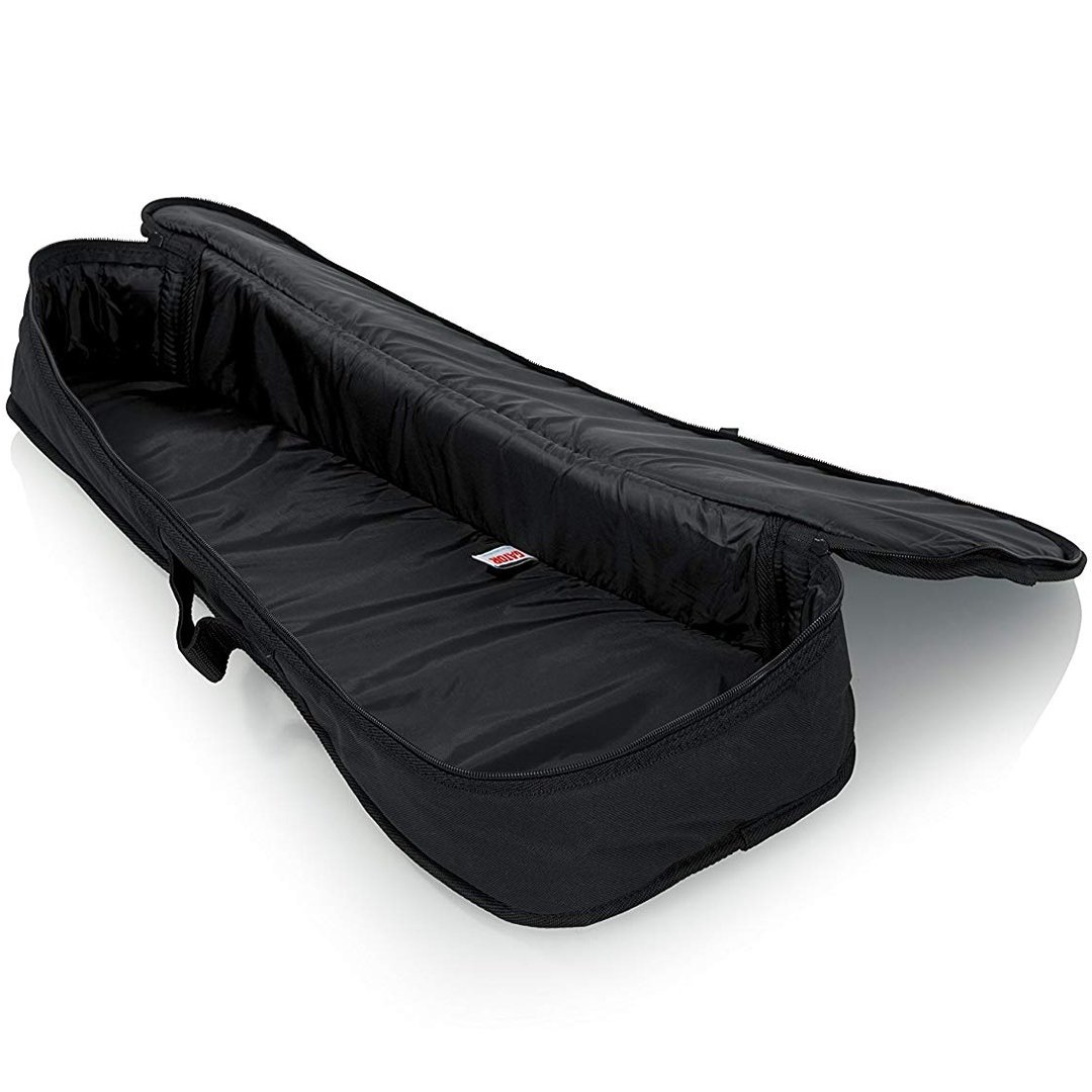 La borsa è realizzata in nylon resistente agli strappi e all’umidità, con una imbottitura interna da 10 mm in schiuma per proteggere lo strumento da urti e graffi. Le aree critiche come il ponte e la paletta sono rinforzate per una maggiore sicurezza durante il trasporto.