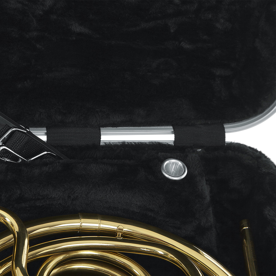 All’interno, la GC-FRENCH-HORN presenta una struttura in schiuma EPS con rivestimento in peluche, che protegge lo strumento da urti e graffi. Include anelli a D per l’aggancio di una tracolla opzionale.
