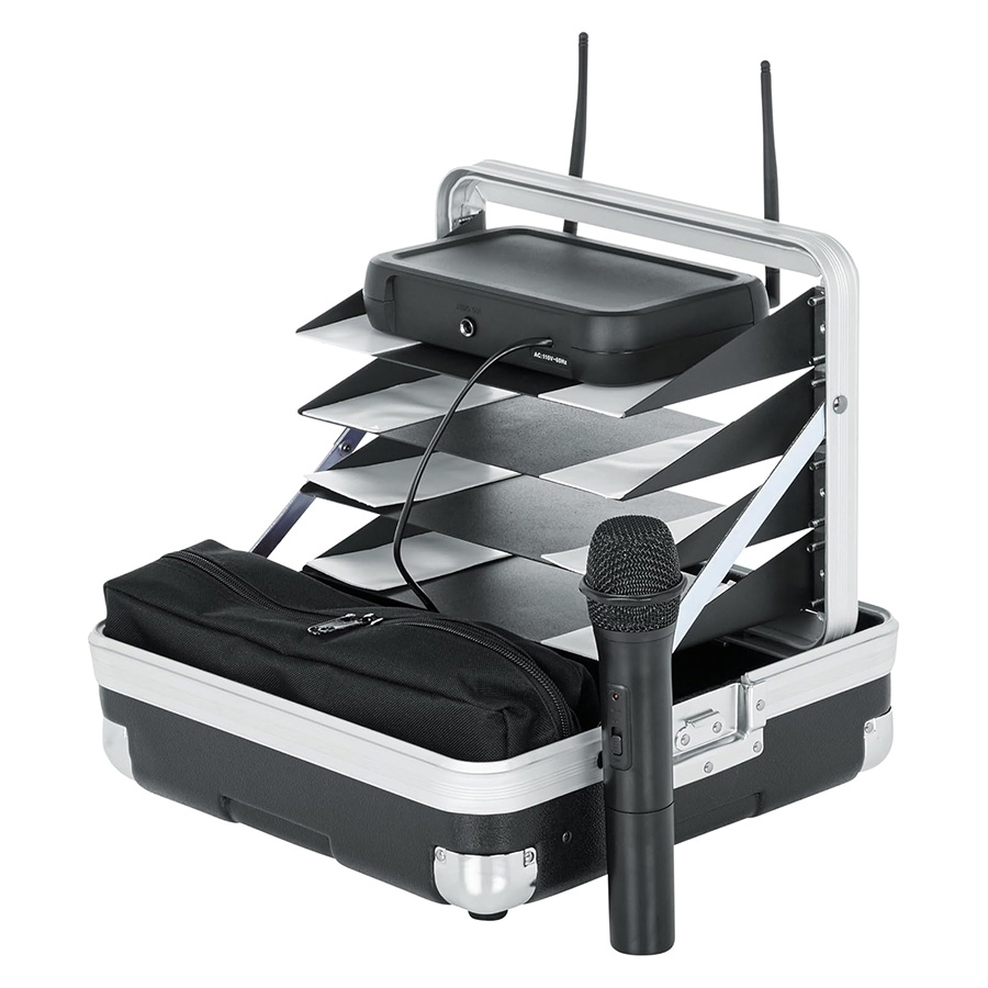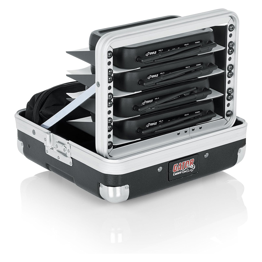 La Gator GM-4WR è una valigia rigida sagomata progettata per il trasporto sicuro di quattro sistemi microfonici wireless completi, inclusi ricevitori e microfoni palmari. Ideale per service audio, DJ, tecnici e installazioni professionali, offre protezione ATA, praticità e compattezza.
