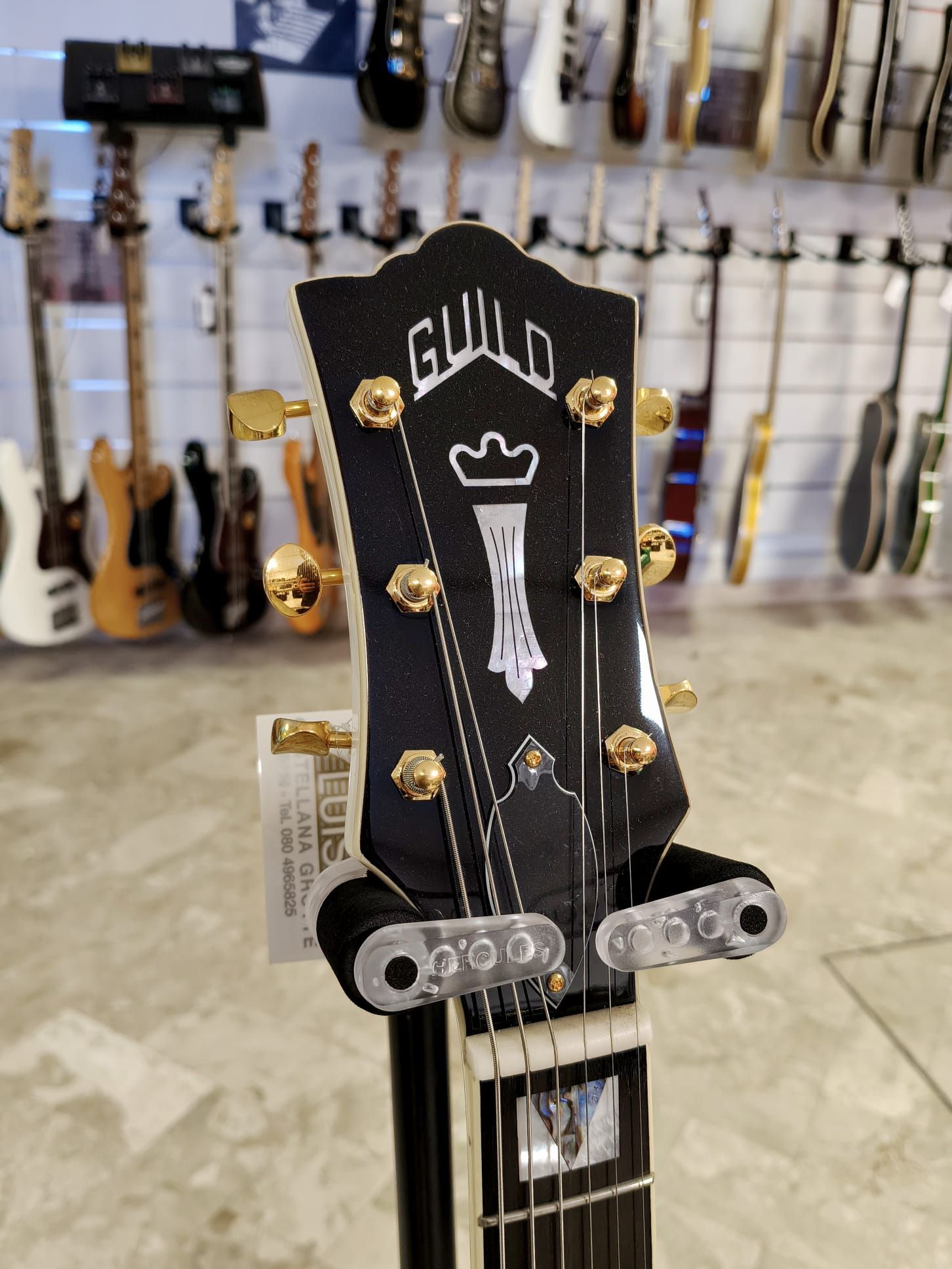 La Guild Starfire VI Snowcrest White è una chitarra semiacustica in stile Gibson 335, ideale per chitarristi che cercano suono caldo, definito e vintage. Con corpo in laminato, pickup humbucker e finitura Snowcrest White, offre tonalità perfette per jazz, blues, rock e fusion. Elegante e versatile, adatta a studio, live e collezione.