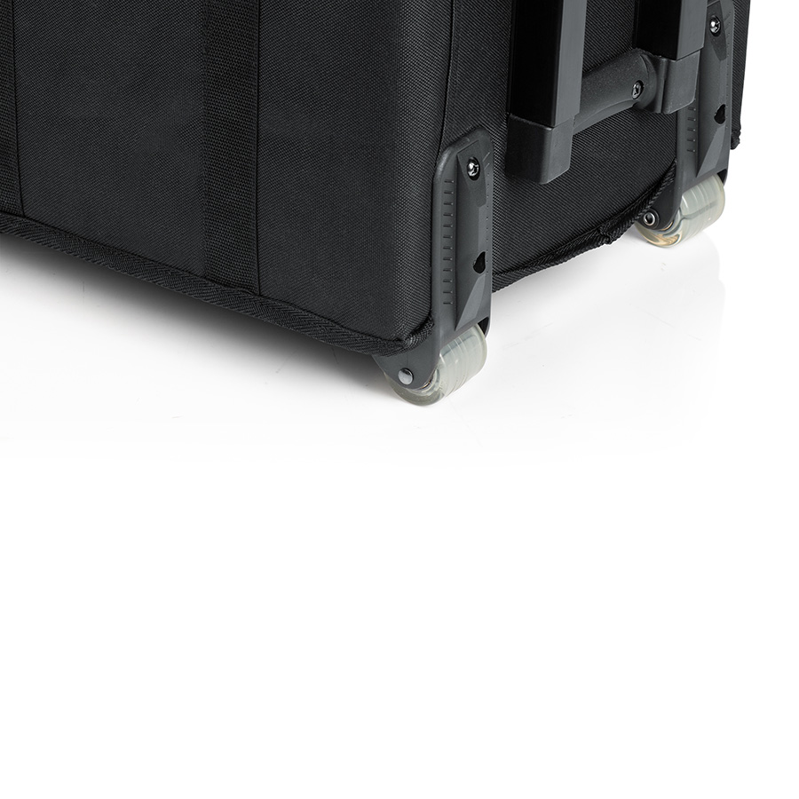 Realizzata con telaio interno in legno da 1/2” e rivestimento in nylon 600D, la GX-20 è resistente agli urti e all’abrasione. Include maniglia telescopica retrattile, maniglie laterali rinforzate e ruote girevoli per un trasporto fluido.