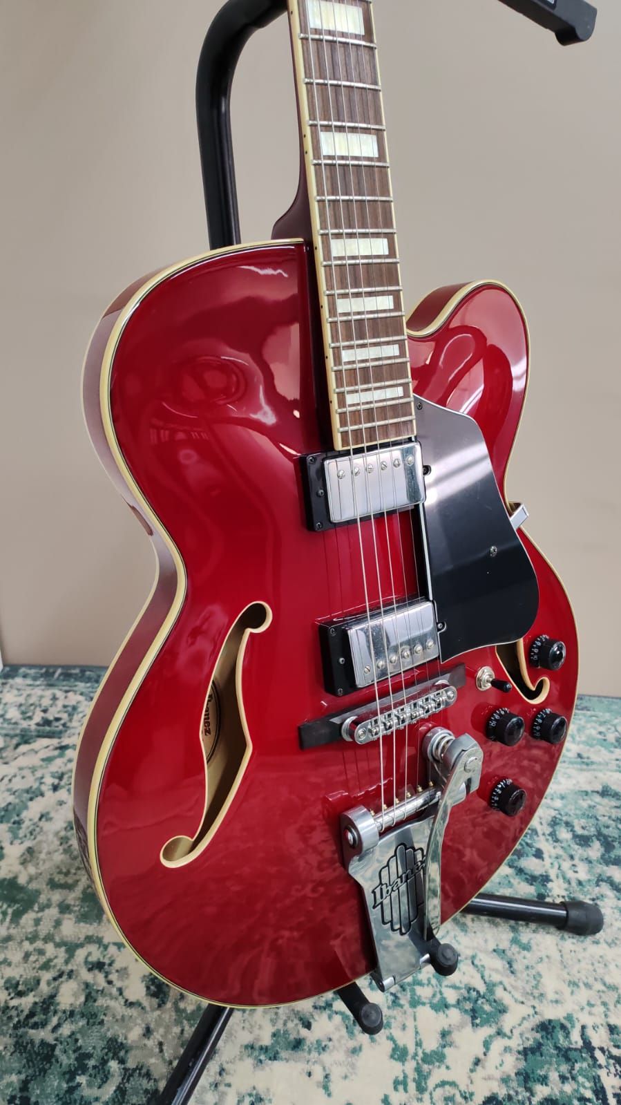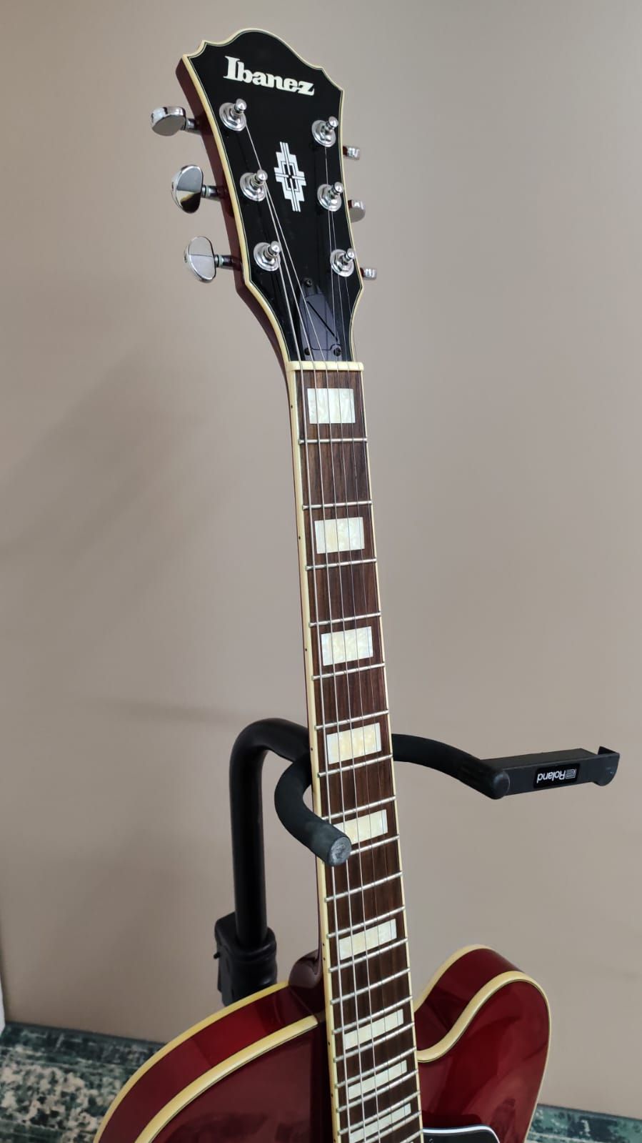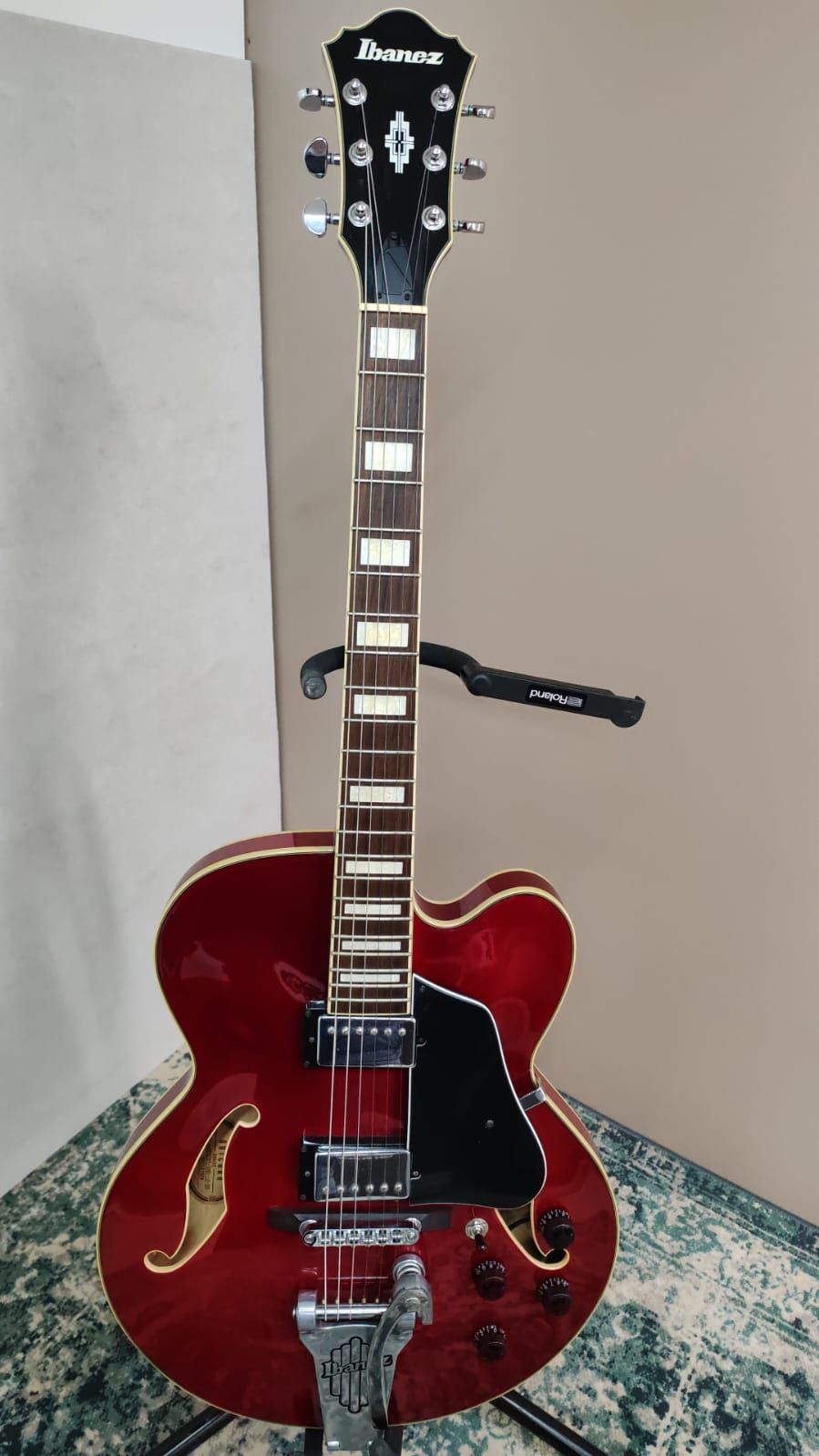 Ibanez AFS75T è una chitarra hollow-body elegante con pickup humbucker Classic Elite e ponte tremolo. Suono caldo e versatile, perfetta per jazz, blues e rockabilly.