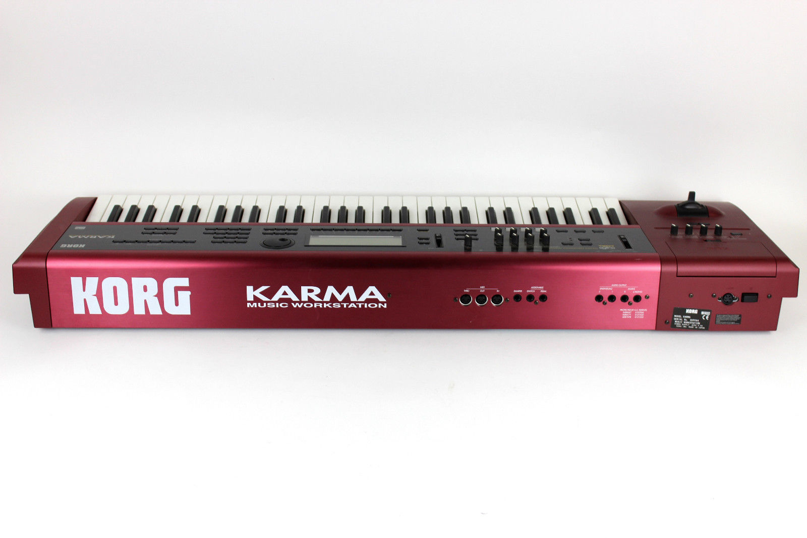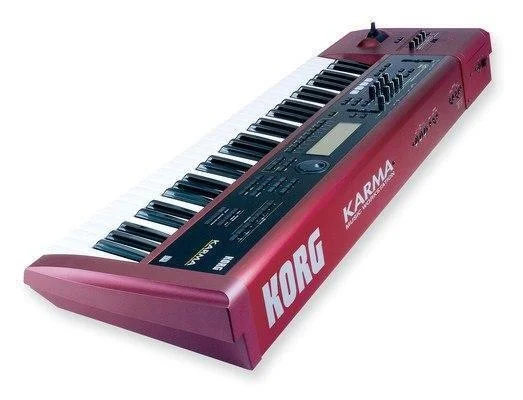Il Korg KARMA è una workstation musicale con tastiera a 61 tasti che abbina un motore sonoro avanzato basato su sintesi PCM e una tecnologia di generazione frasi in tempo reale nota come KARMA. Progettato per performance dal vivo e produzione in studio, offre polifonia fino a 62 voci, sequencer a 16 tracce e una sezione effetti completa con numerose possibilità di modulazione. La funzione KARMA permette di creare groove, frasi e pattern dinamici controllabili in tempo reale tramite manopole e joystick, ampliando notevolmente le possibilità creative rispetto a un sintetizzatore tradizionale. L’archiviazione interna supporta numerosi preset, combinazioni e suoni di batteria, mentre l’unità disco integrata consente salvataggio e gestione dei dati.