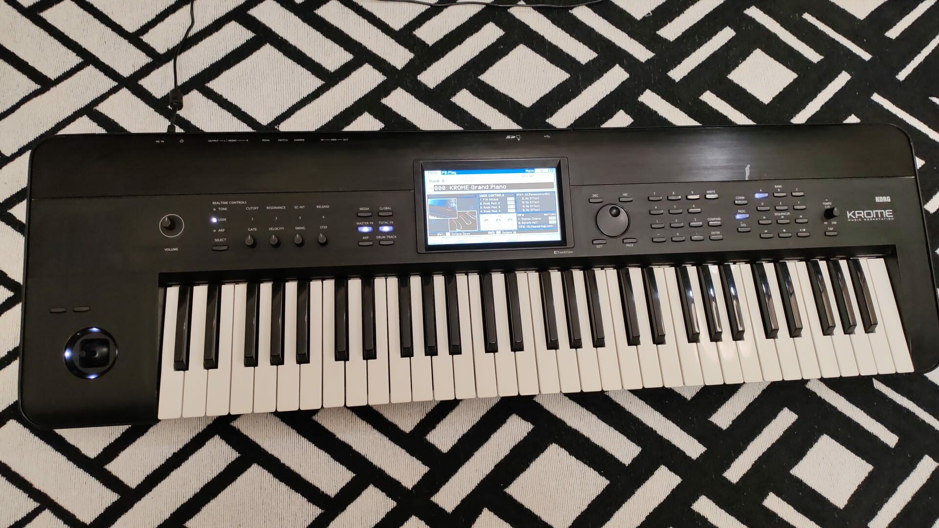 Korg Krome 61, workstation professionale con motore sonoro EDS-X, display touchscreen a colori e 16 tracce di sequencer. Suoni di pianoforte realistici e sintesi avanzata. Possibile permuta.