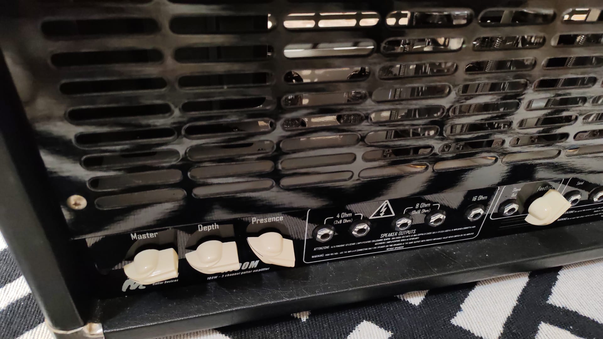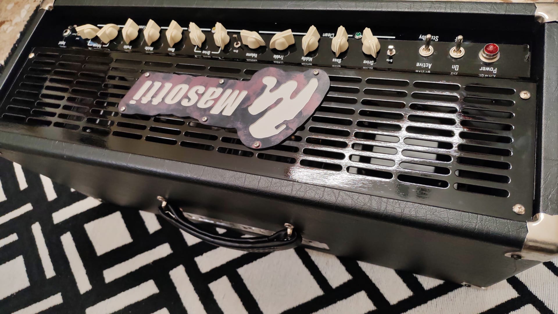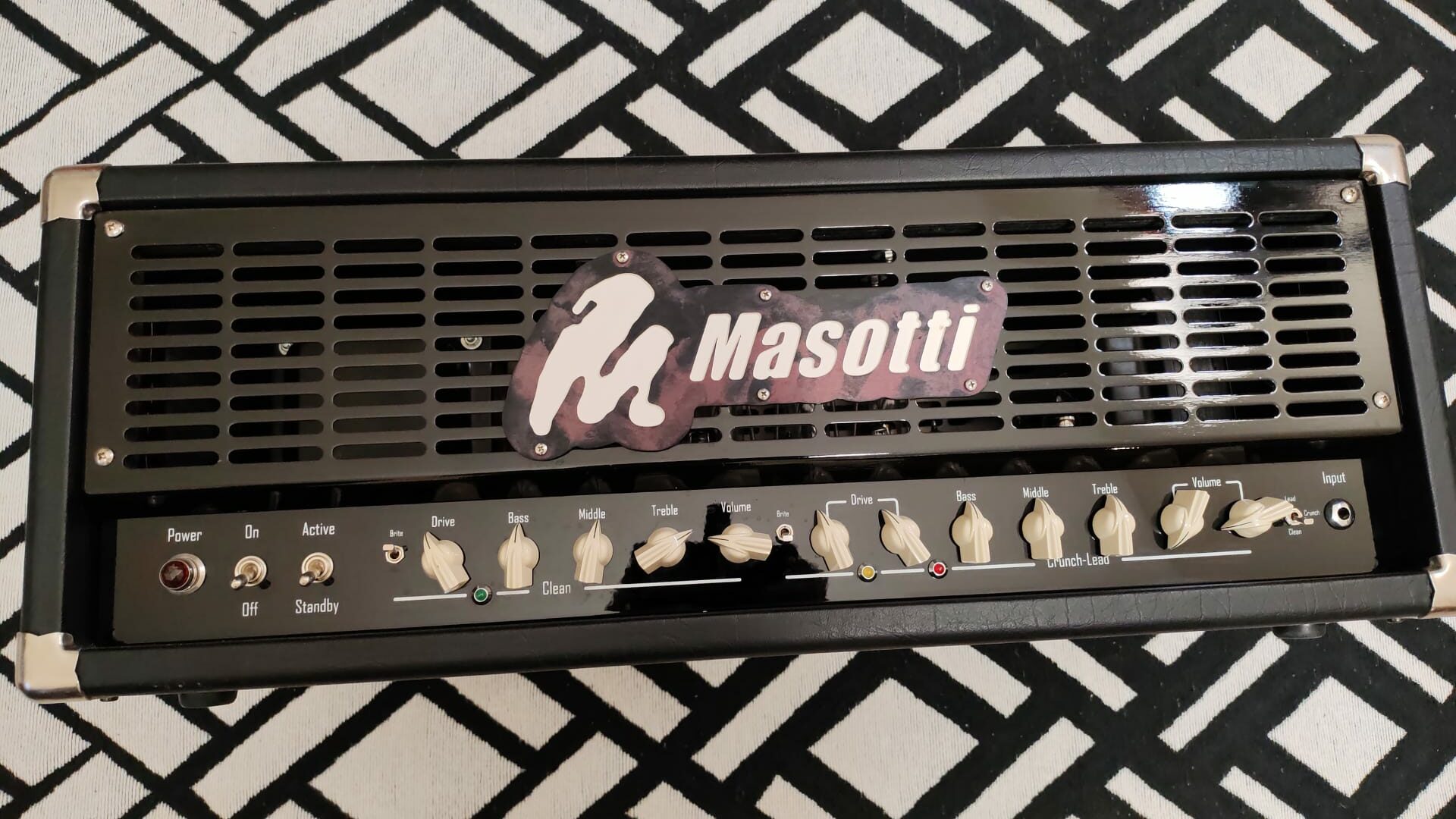 Il Masotti X100M è un amplificatore per chitarra 100W con suono caldo, versatile e potente. Due canali (pulito e distorto) per adattarsi a vari stili musicali.