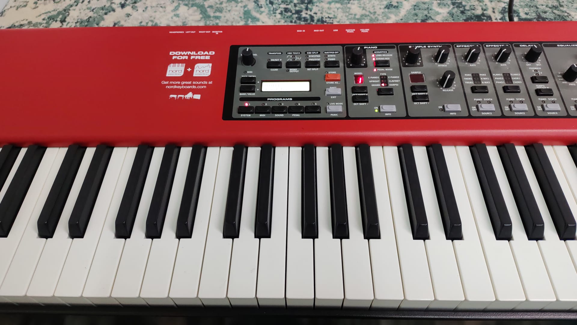 Dotato della celebre Nord Piano Library, questo stage piano include una vasta gamma di suoni di grand piano, upright, electric piano, clavinet e campioni personalizzabili, con la possibilità di caricare nuovi suoni tramite il software Nord Sound Manager.