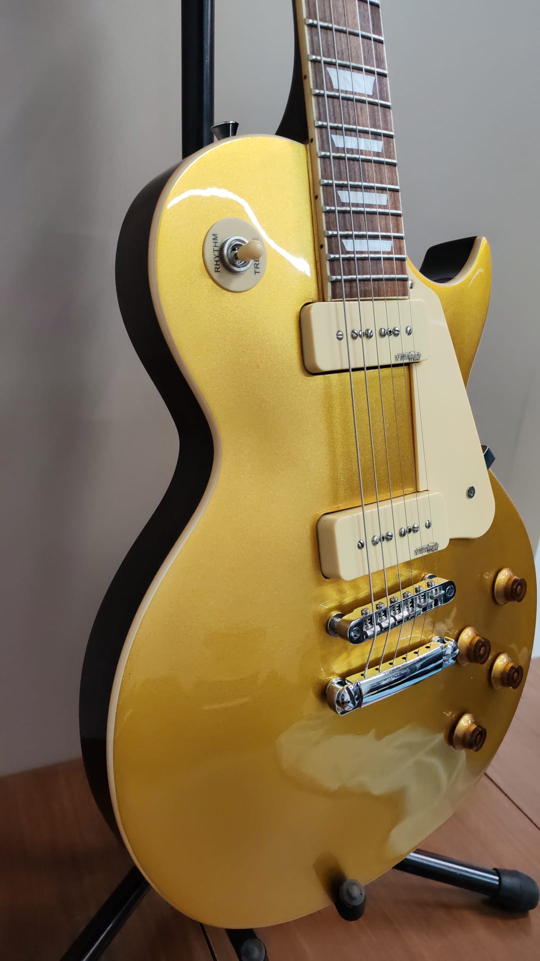Vintage V100 Gold Top P-90, chitarra elettrica con pickup P-90. Suono vintage caldo e versatile. Permuta disponibile.